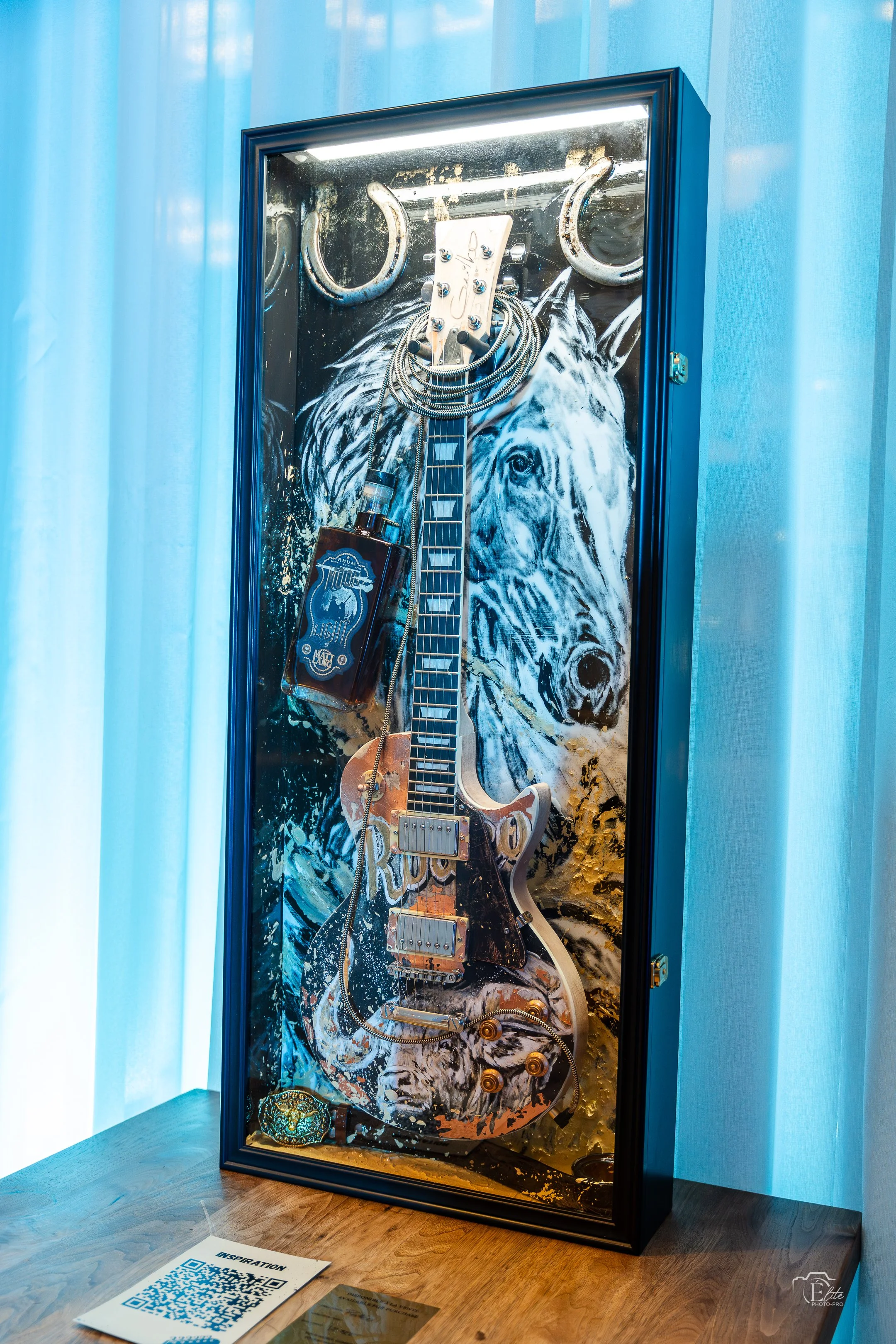 For this guitar, I added a personal nod: a bottle of MoonLight Rum from singer Matt Lang.